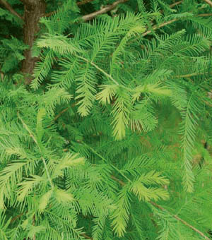 Green,linear flat needles in 2 ranks turn orange-copper-fall |